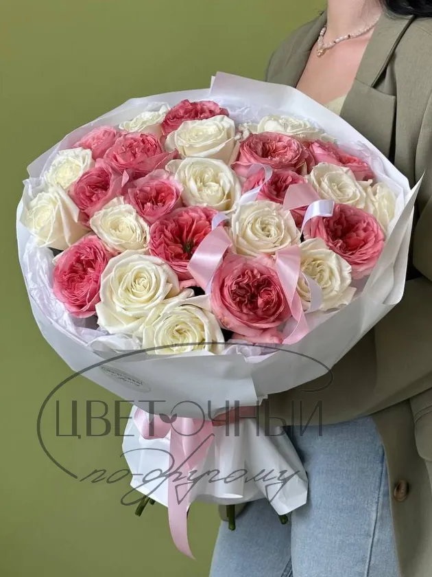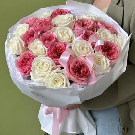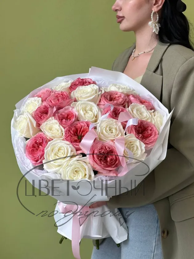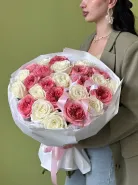 Букет «Микс из 25 одноголовых роз PLAYA BLANCA и PINK EXPRESSION »