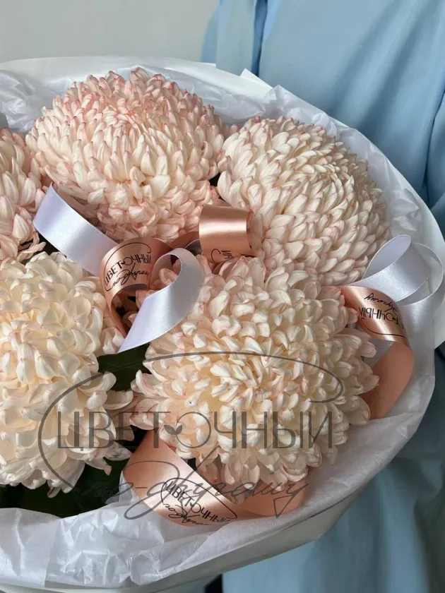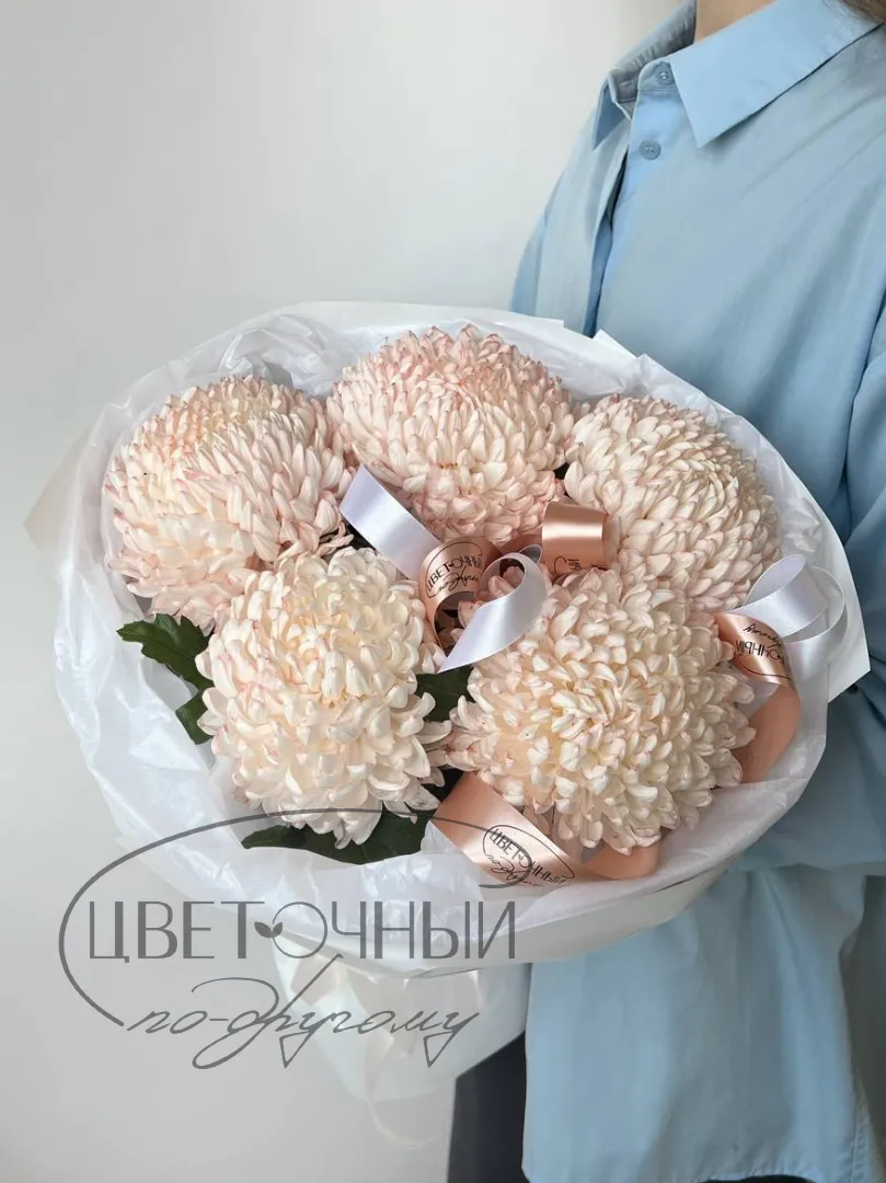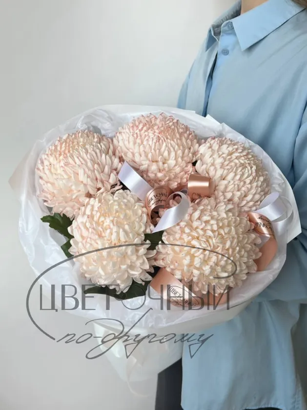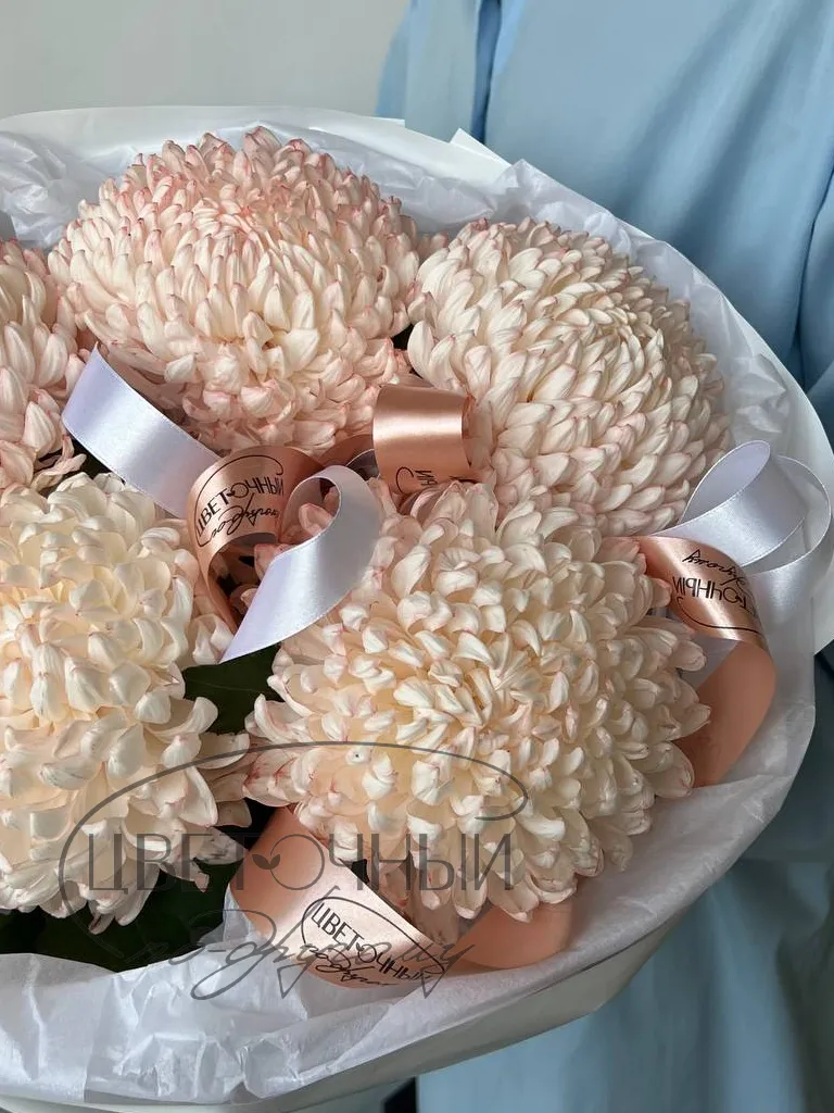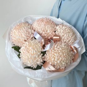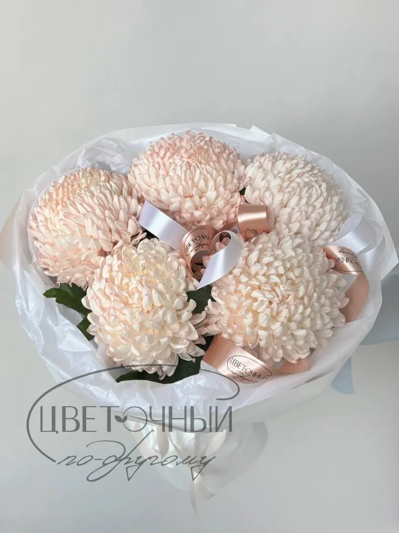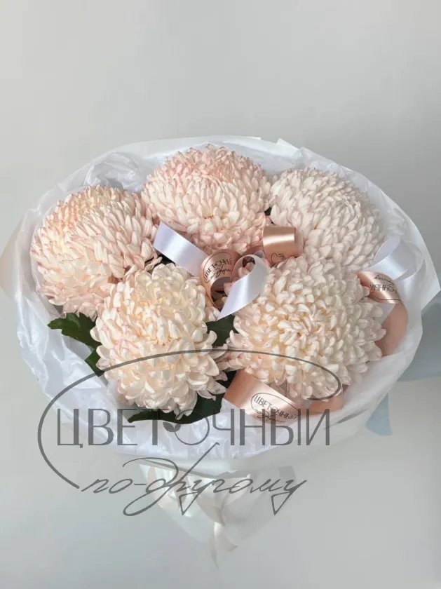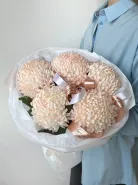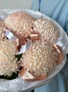 Букет «5 персиковых хризантем РИБОНЕТ»