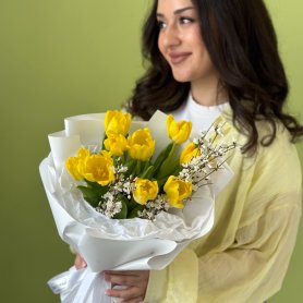 Букет из ярких желтых тюльпанов создаст весеннее настроение и заряд энергии!