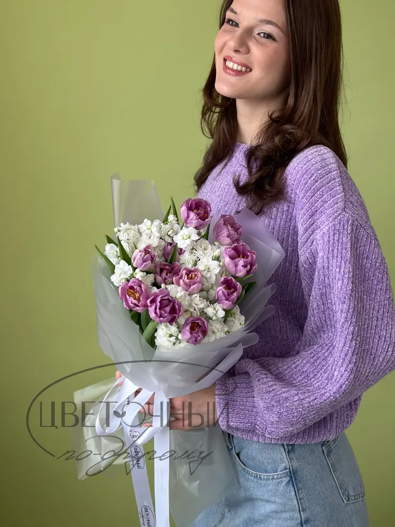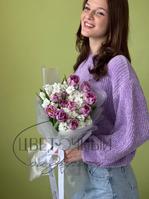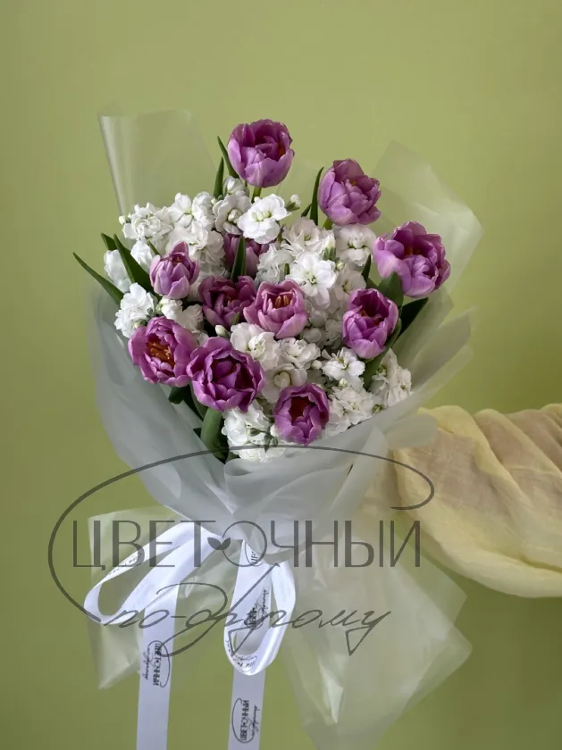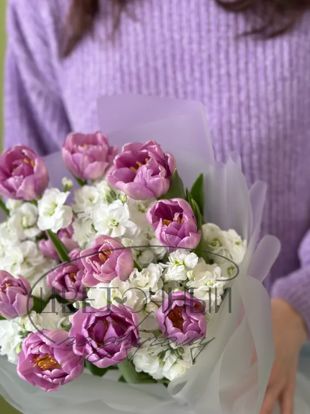 Букет « Лавандовые тюльпаны и маттиола»